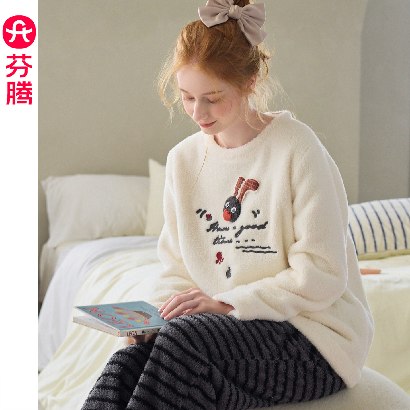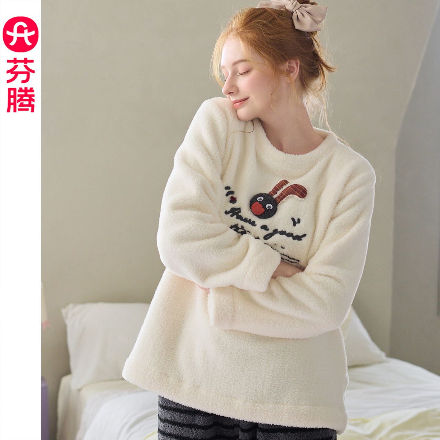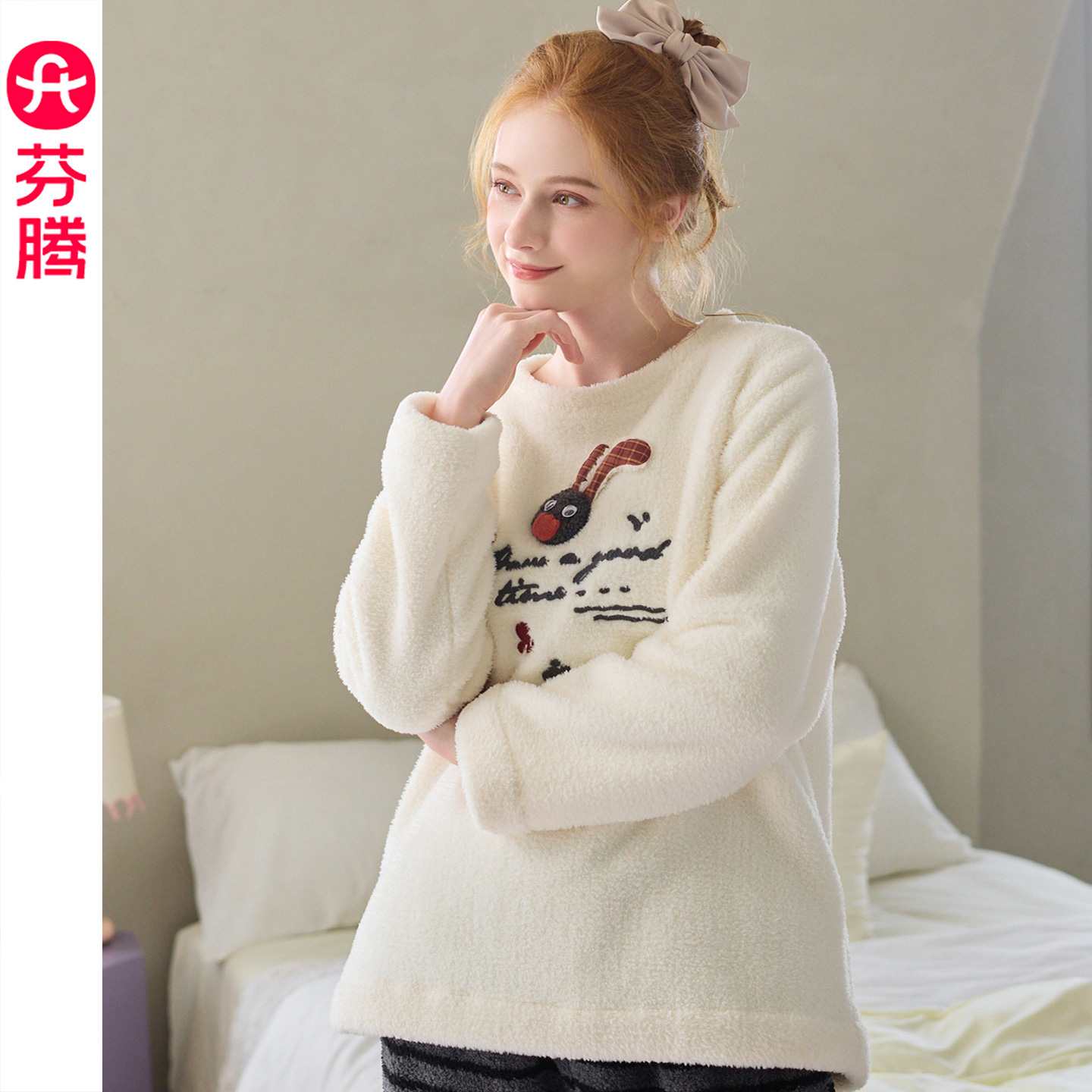 芬腾珊瑚绒睡衣女秋冬季 卡通可爱套头外穿法兰绒家居服2025年新款