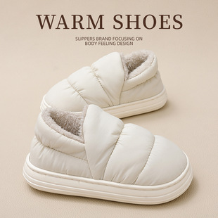 女厚底保暖羽绒布棉鞋 防水包跟棉拖鞋 秋冬季 家居室内防滑拖鞋 男款