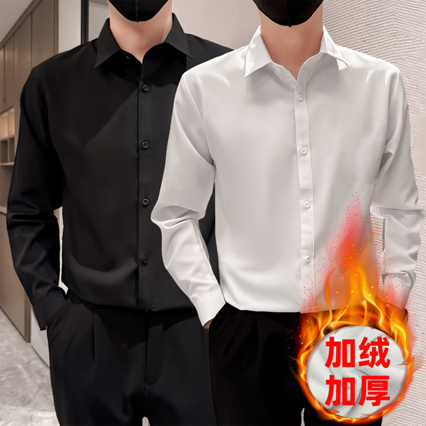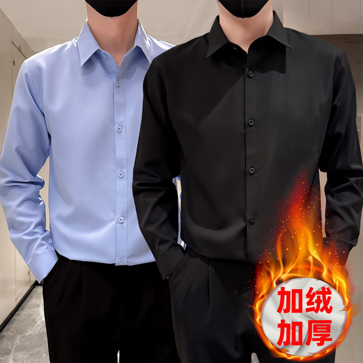 保暖抗皱免烫通勤中式 秋冬季 休闲衬衣 男长袖 绅士商务加绒立领衬衫