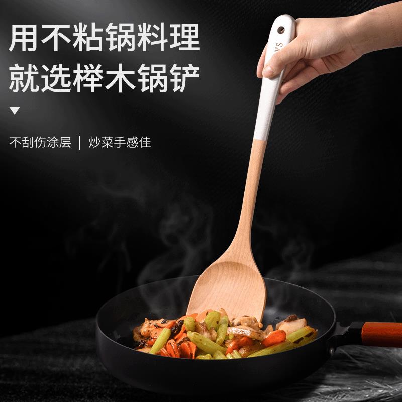 榉木铲子不粘锅专用长柄木锅铲炒菜铲家用耐高温厨具木质汤勺套装