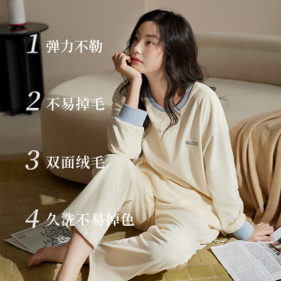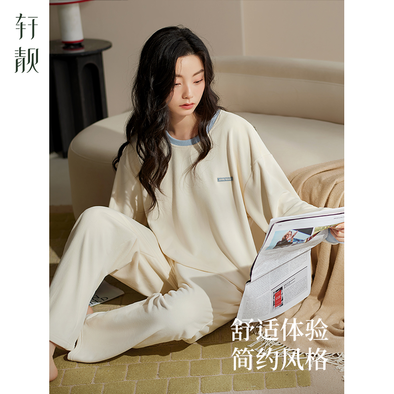 加绒海岛绒圆领简约可外穿珊瑚绒家居服套装 轩靓25新款 睡衣女冬季