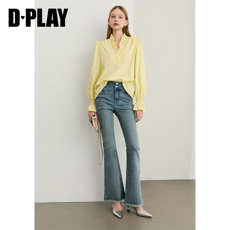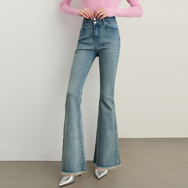 女毛边长款 蓝色微喇牛仔裤 裤 子喇叭裤 DPLAY2025年秋季 长裤 新款