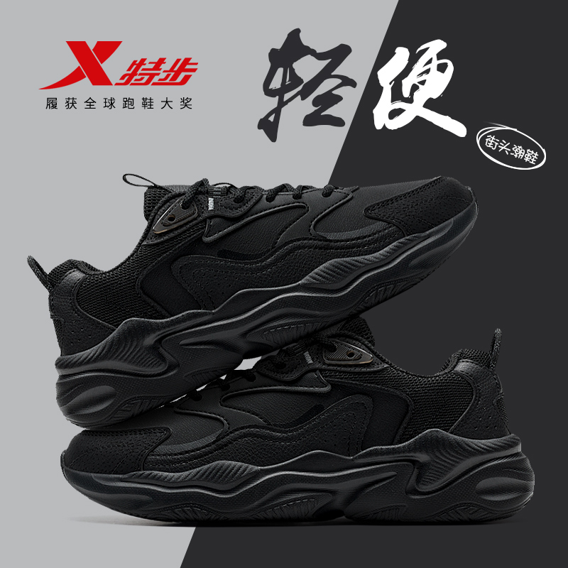减震轻便软底休闲黑色爸爸跑鞋 秋冬皮面防水跑步鞋 男鞋 乔丹运动鞋