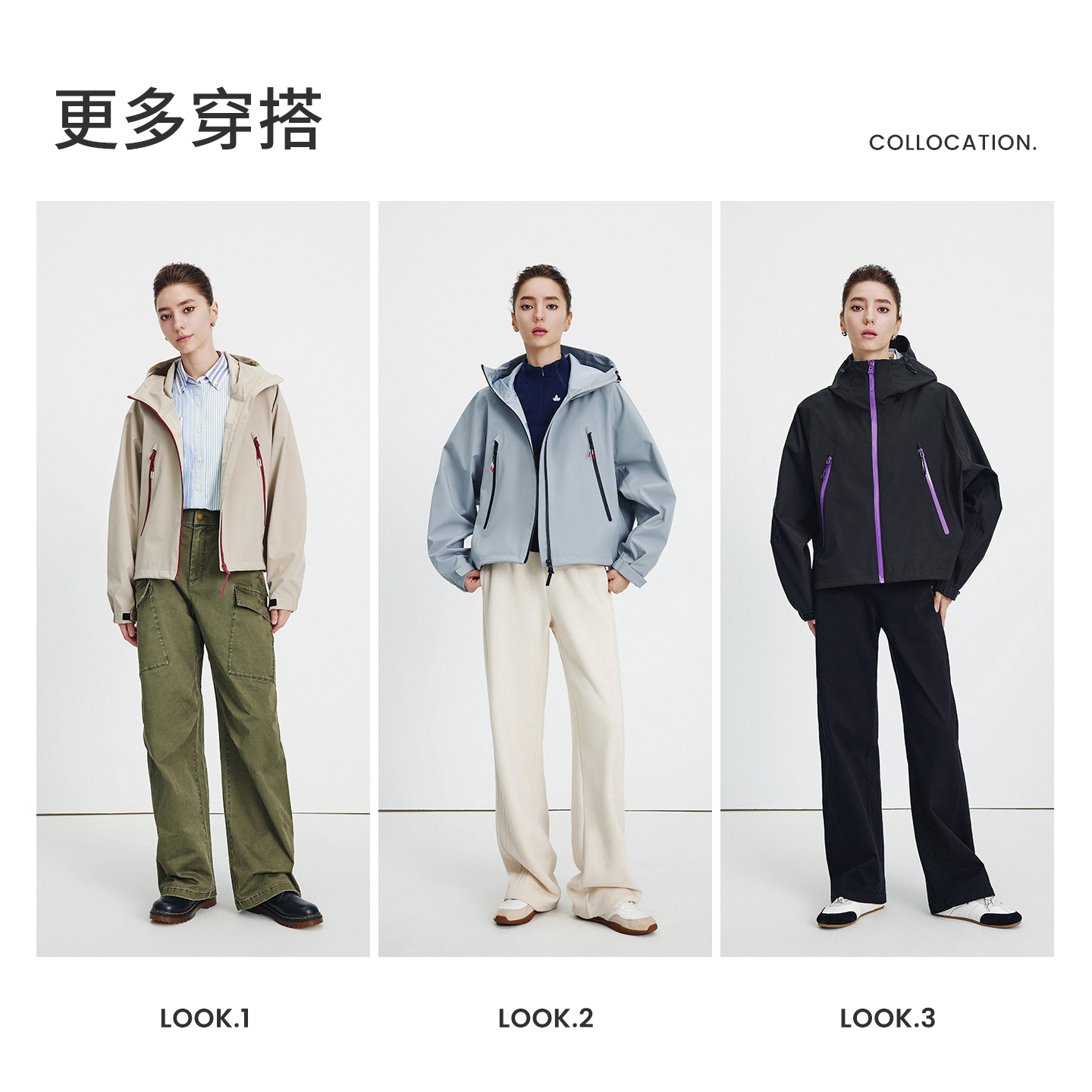 夹克女户外防风防水登山服 外套小个子新款 骆驼女装 三防冲锋衣短款