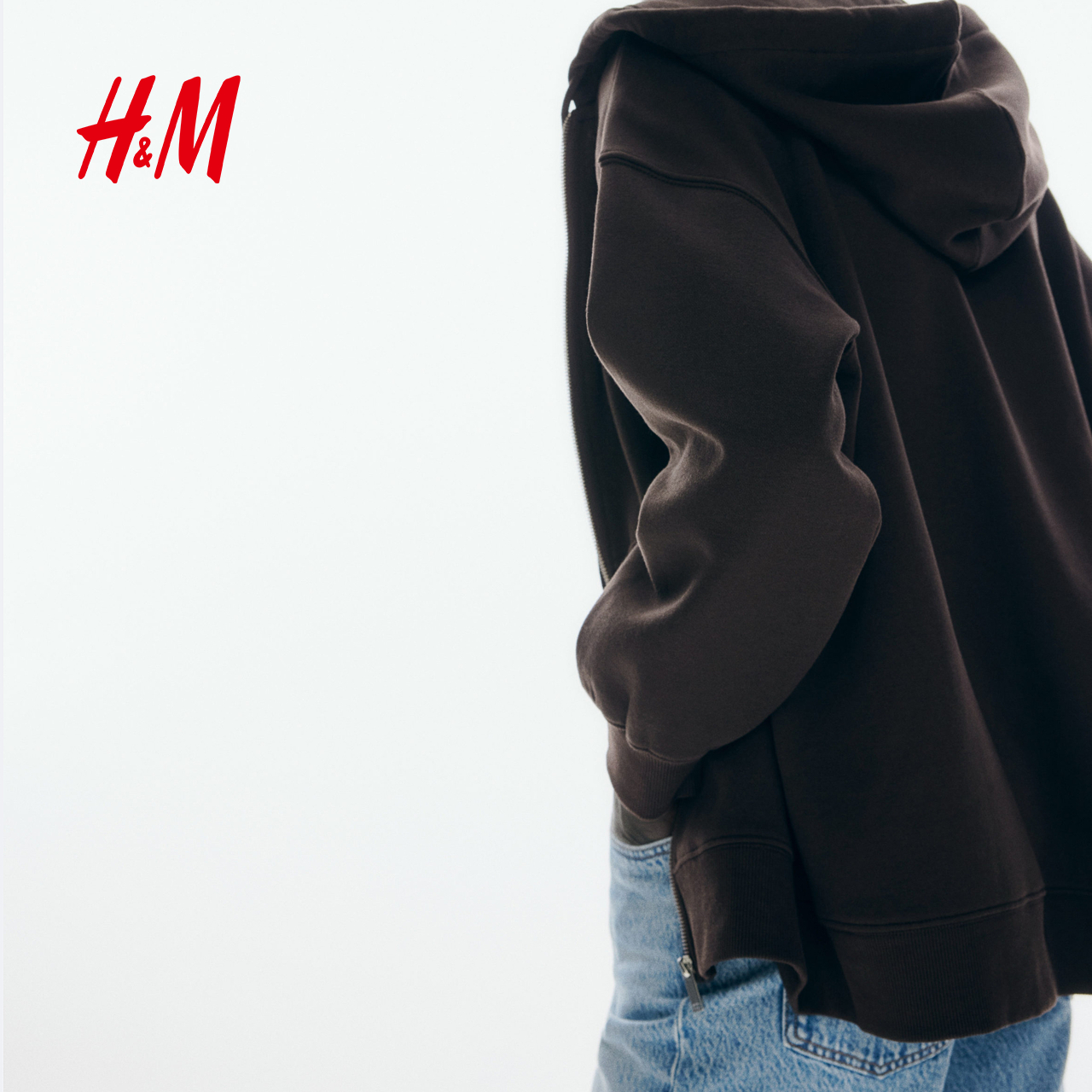 舒适大廓形柔软加绒拉链连帽外套1234775 新款 HM女装 卫衣2025秋季