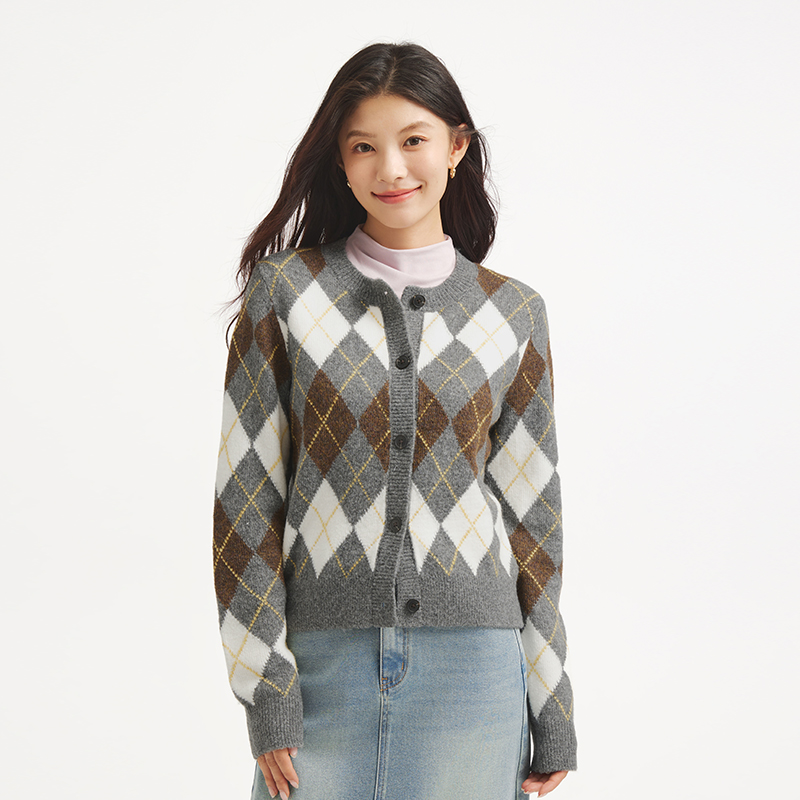 双11预售 新款 热风女士针织衫 毛衣2025年冬季 菱形格打底衫 开衫
