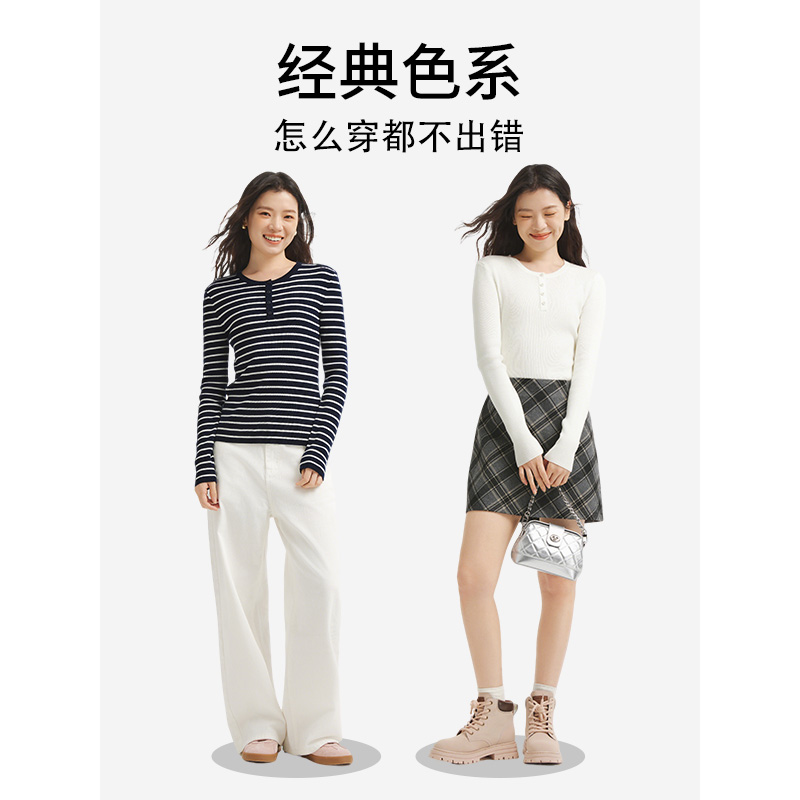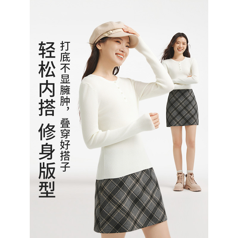 修身 亨利领打底衫 打底毛衣2025年冬季 美式 上衣 新款 热风女士针织衫