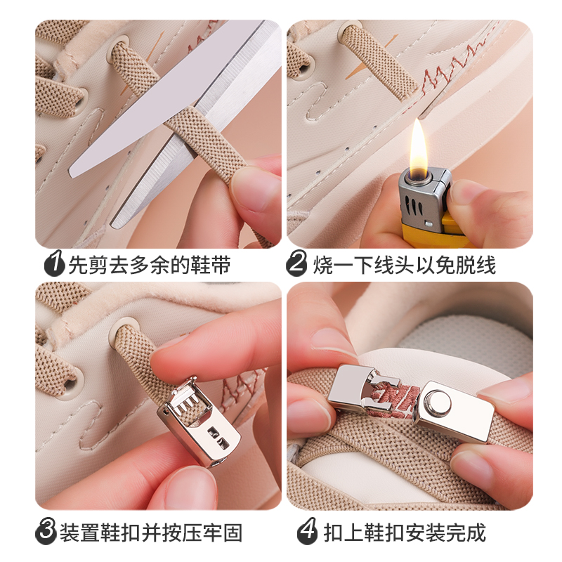 卡扣固定器扁平弹力鞋 带神器男女款 带绳 带扣儿童运动免系鞋 懒人鞋