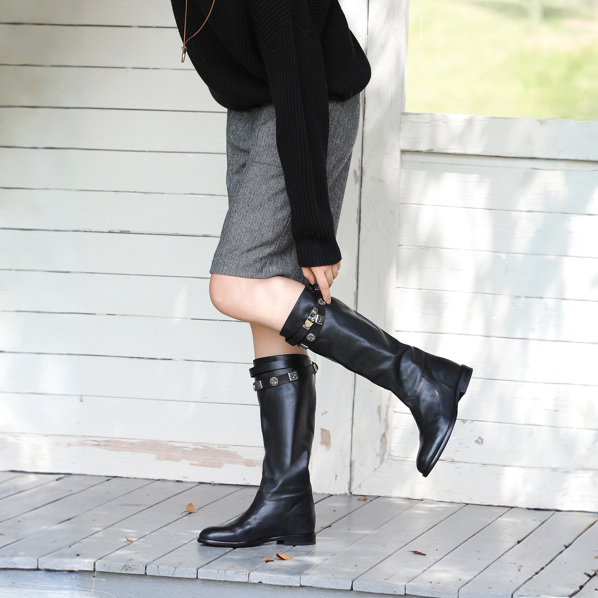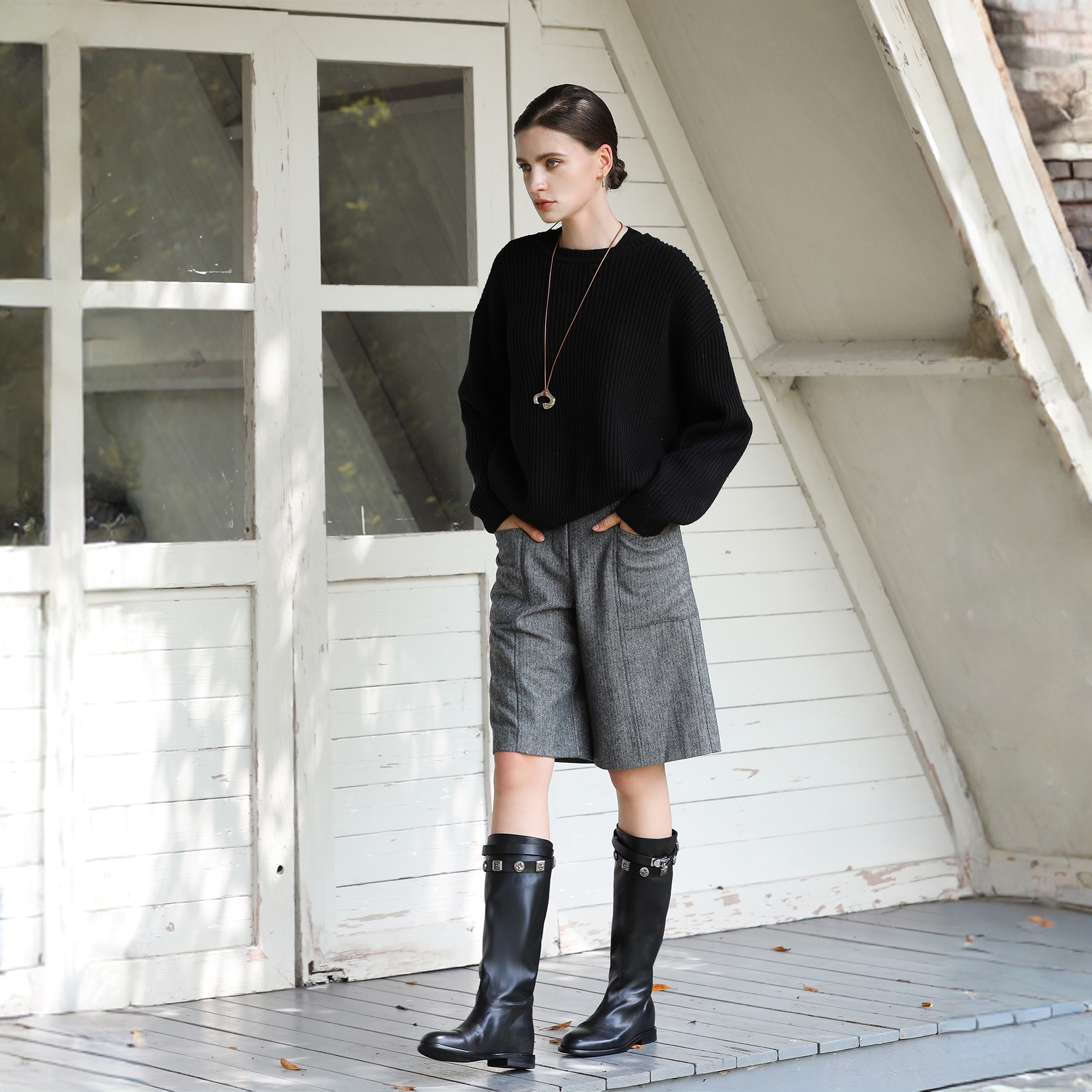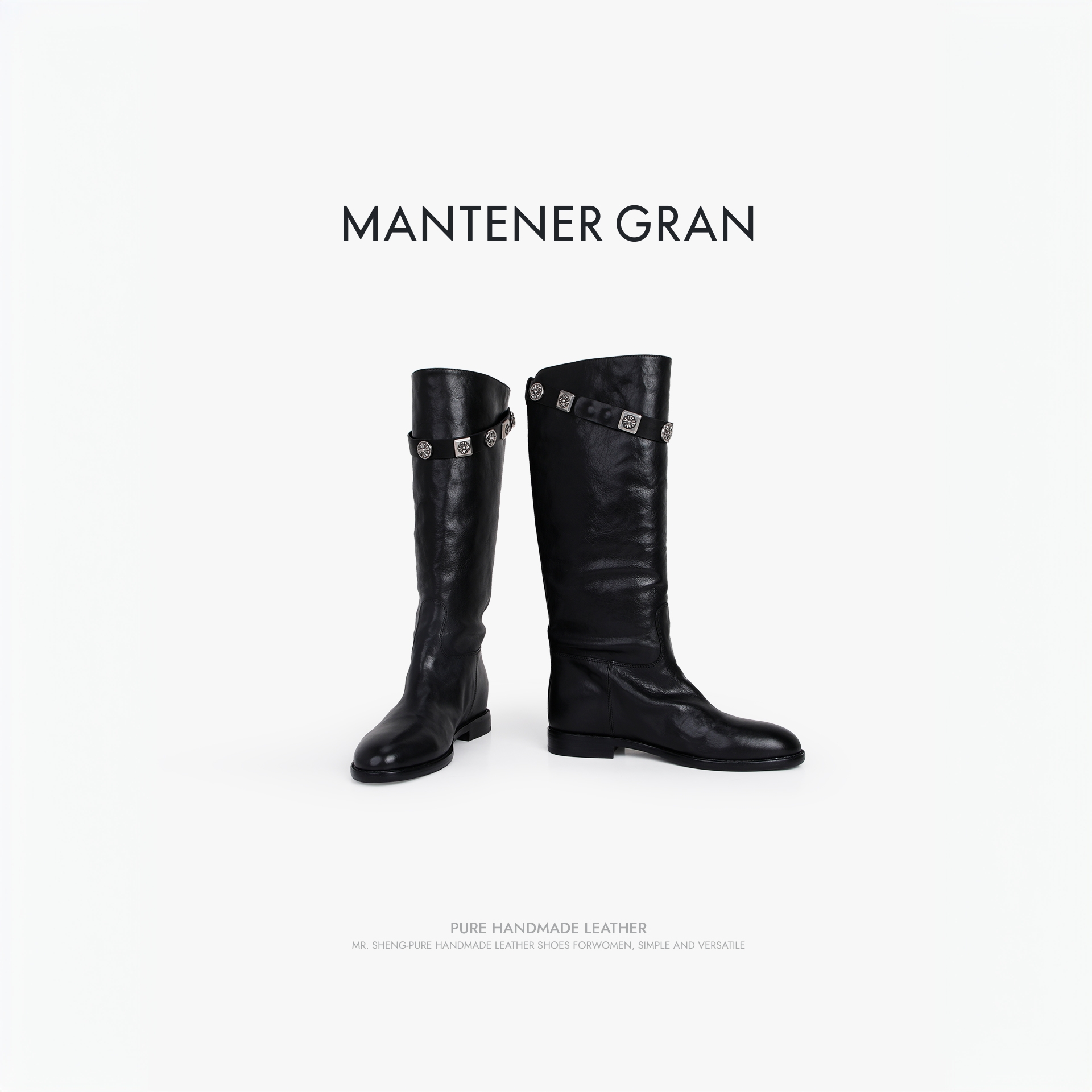 MantenerGran植鞣水洗小牛皮长筒靴女小众设计高靴堆堆靴MG女鞋