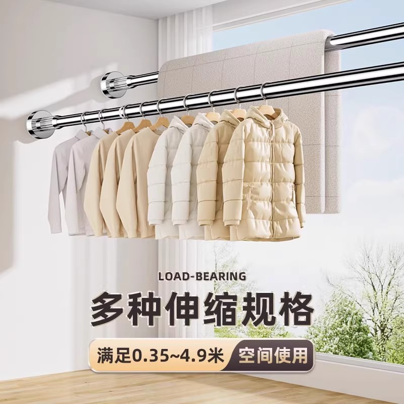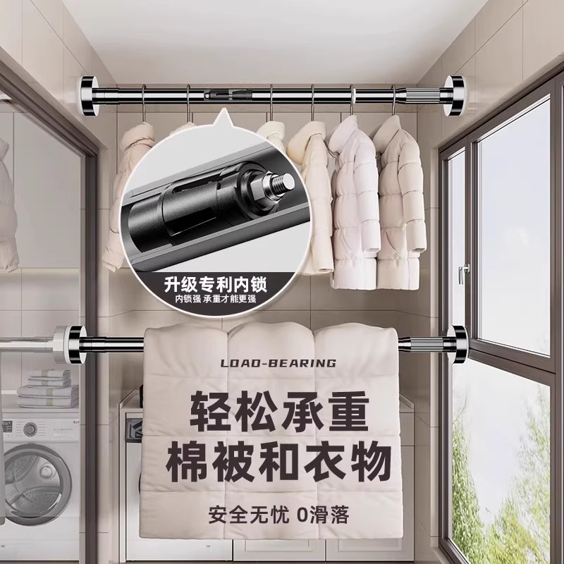 免打孔伸缩杆承重晾衣杆衣架不锈钢窗帘挂杆浴帘杆子门帘衣柜撑杆