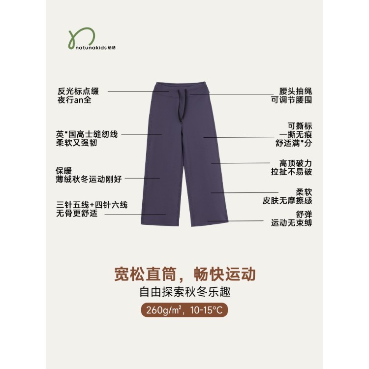 纳桔亲子儿童瑜伽裤 秋冬女童舞蹈高弹加绒亲肤保暖运动宽松直筒裤