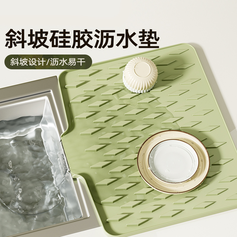 硅胶沥水垫家用厨房水槽台面边缘导流式 果蔬碗碟盘滤水吧台干燥垫