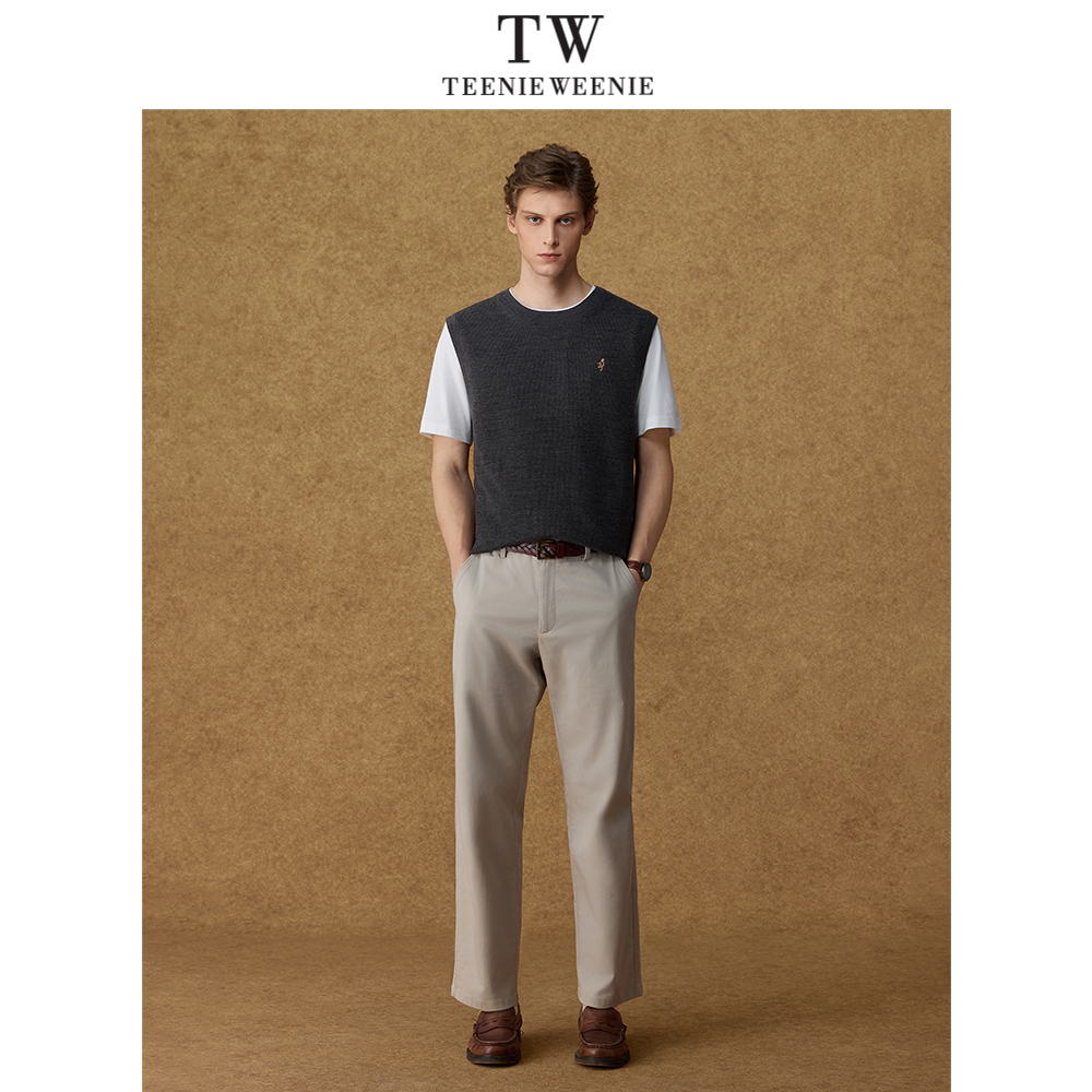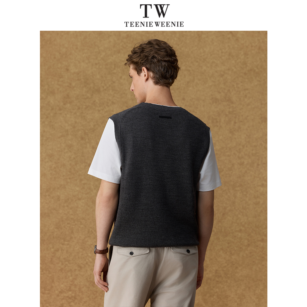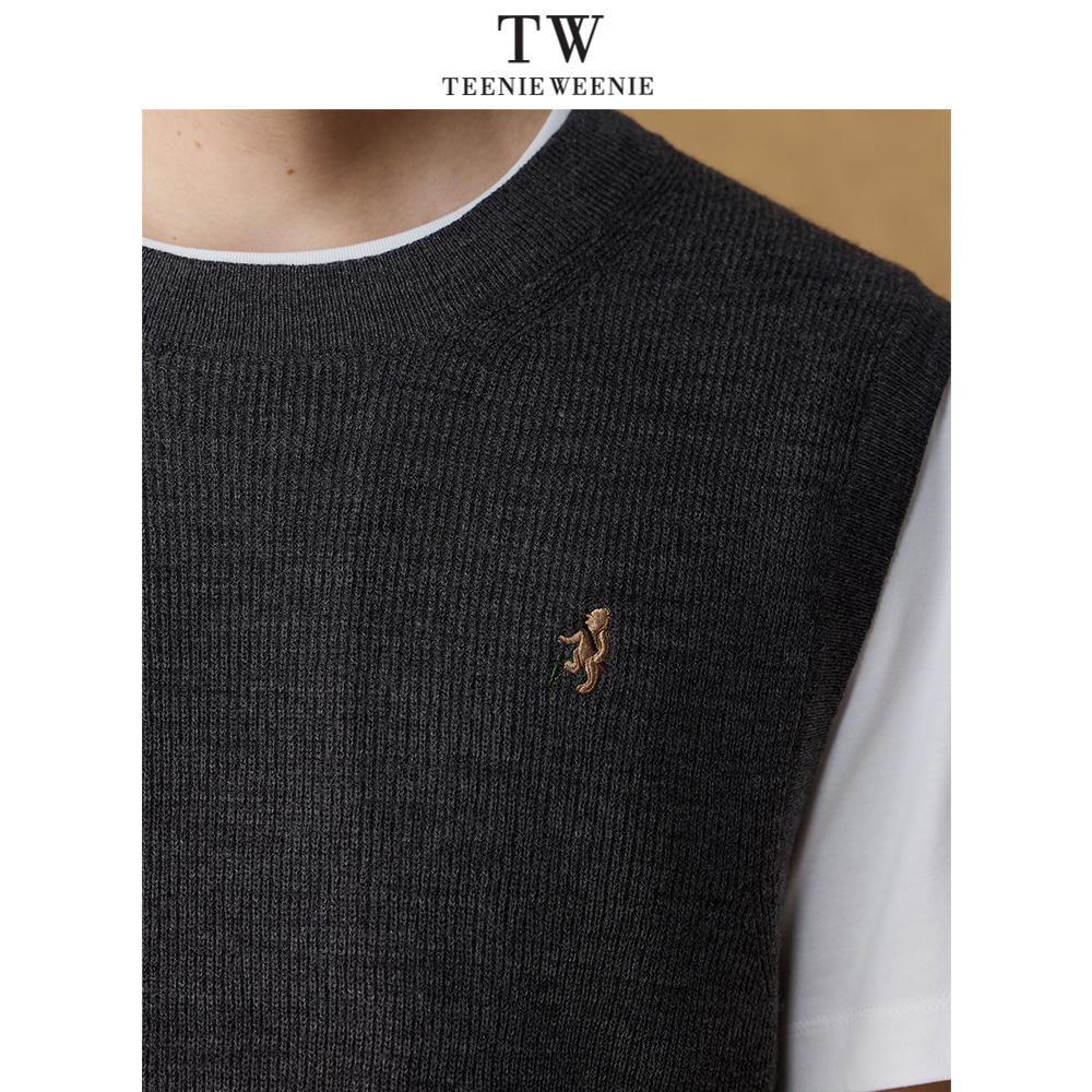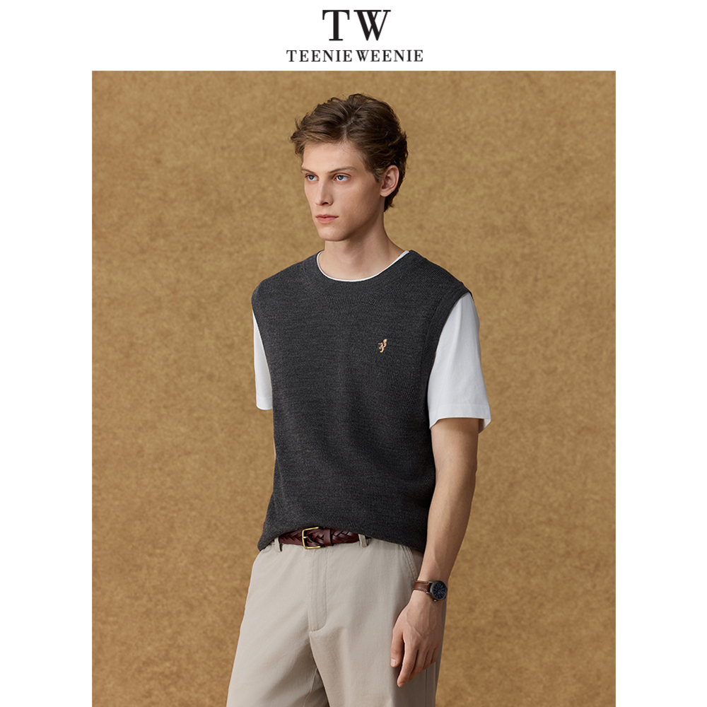 Teenie 羊毛混纺轻便复古英伦八字纹编织马甲 Weenie小熊男装