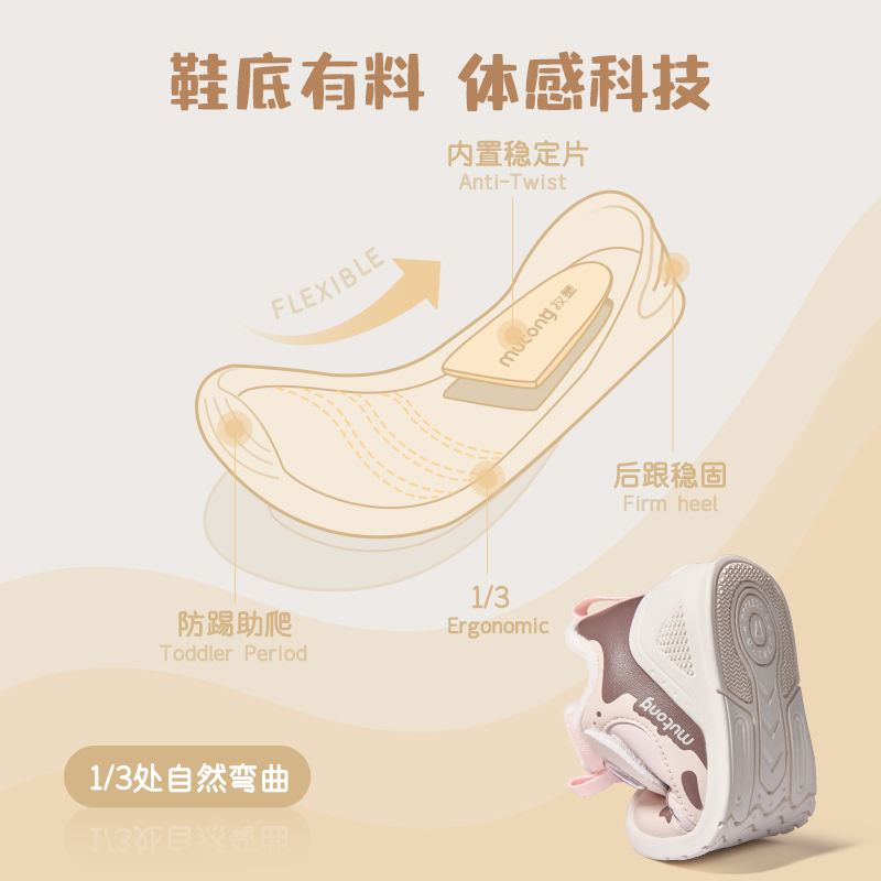 加绒保暖鞋 牧童童鞋 软底男童周岁宝宝棉鞋 冬季 女 小虎鲸婴儿步前鞋