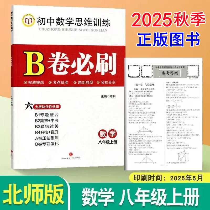 初一初二初三中考B卷必刷数学八下七上北师大版 2025秋成都市名校题库八年级上下册数学北师大版 月考期中专题复习期末测试卷真题卷