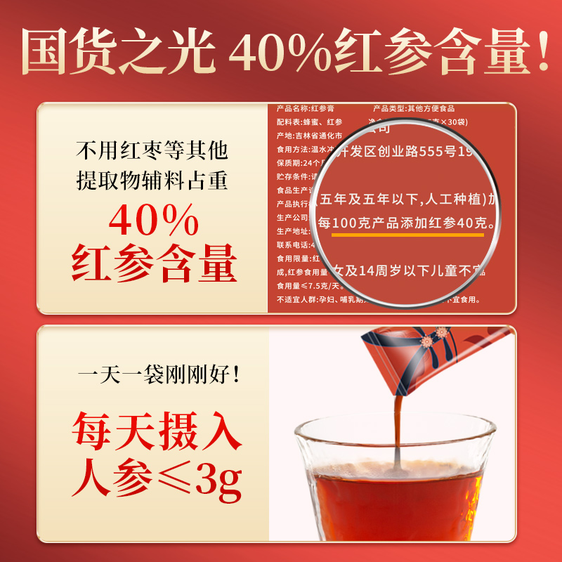 红参膏红参饮品浆茶红渗膏长白山高丽参提取液浓缩非韩国40%含量