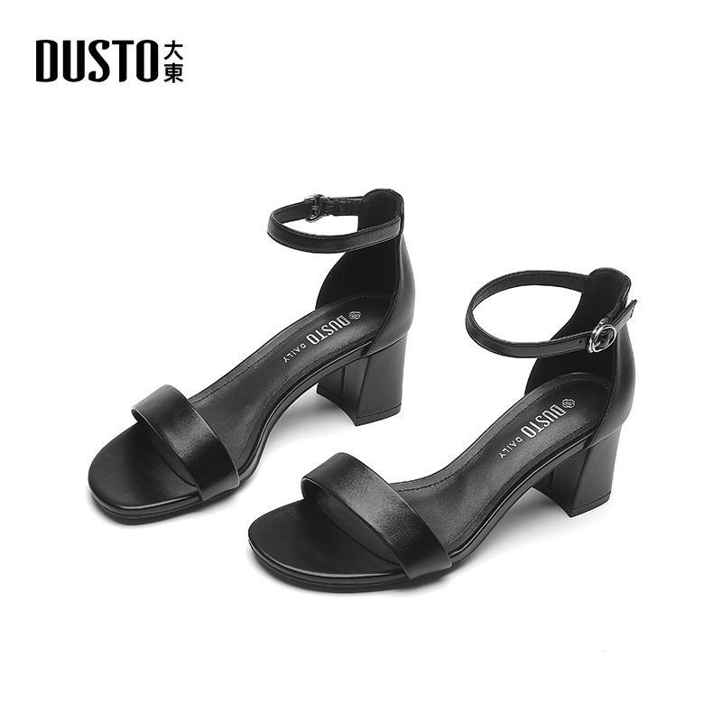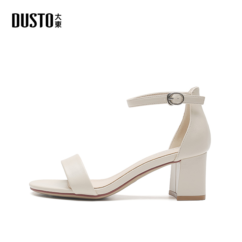 法式 新款 时尚 一字扣凉鞋 大东女鞋 百搭仙女风休闲粗跟凉鞋 2025夏季