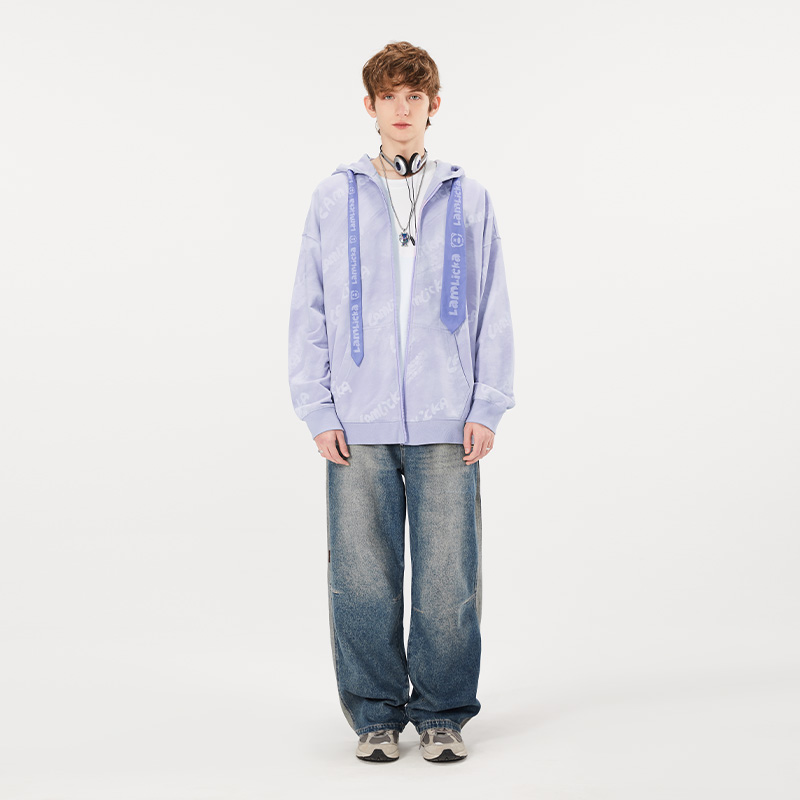 江南先生NewJNXS美式 情侣卫衣秋潮牌运动风外套 复古织带V领插肩袖