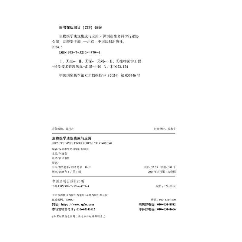 2024新书 中国法制出版 生物医学法规集成与应用 生物医学法律法规 社9787521643794 刘晓安 正版