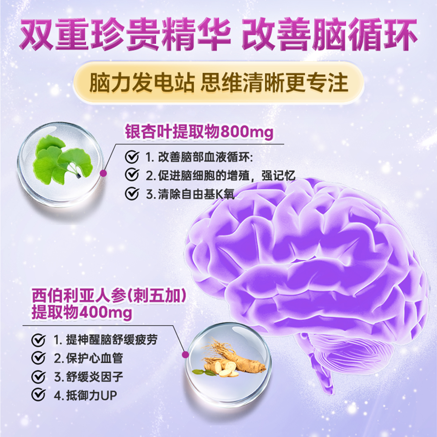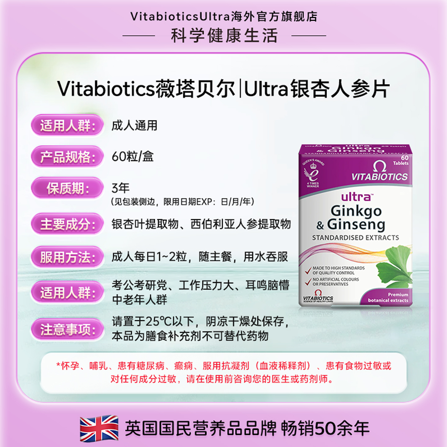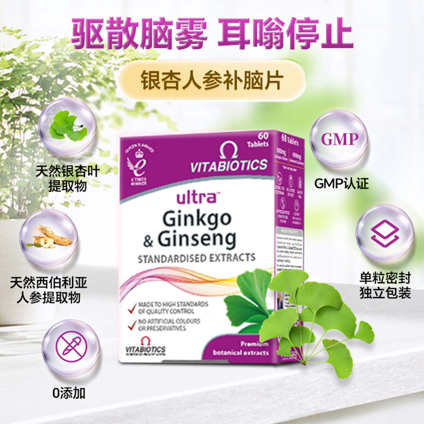 vitabiotics银杏叶提取物强力脑活素人参提升补脑成人学生记忆力