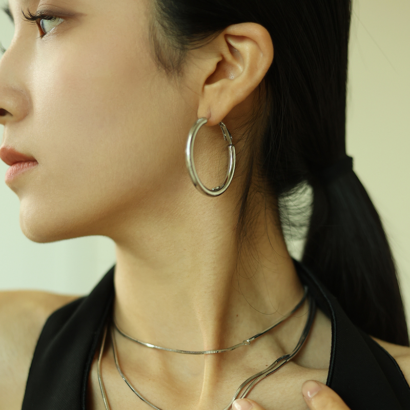 999纯银耳针赵丽颖乔妍同款 大耳圈女圈圈耳环素圈耳饰2025爆款