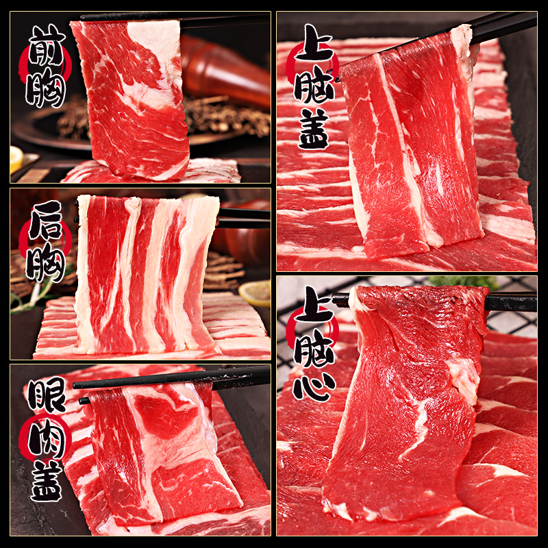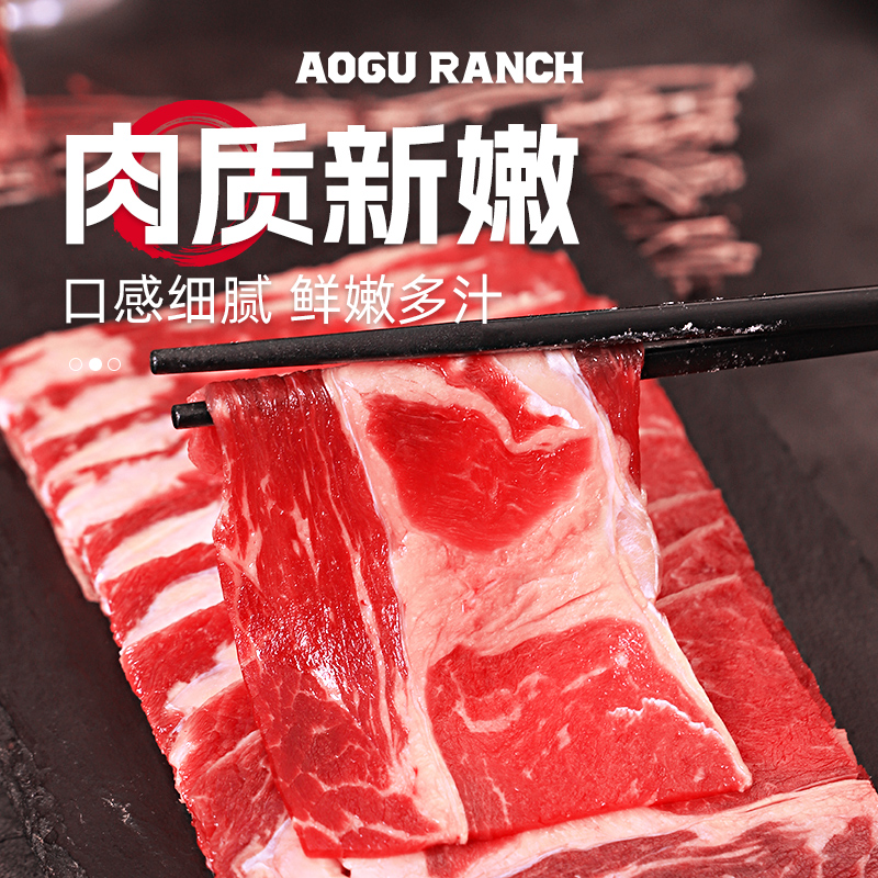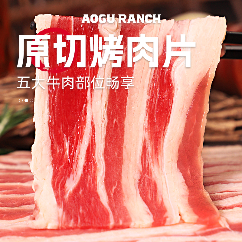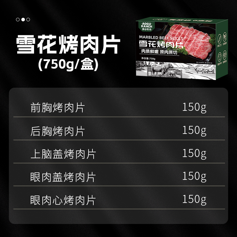澳谷牧场雪花烤肉片原切肥牛片牛肉卷5种纯牛肉火锅烤肉食材套餐