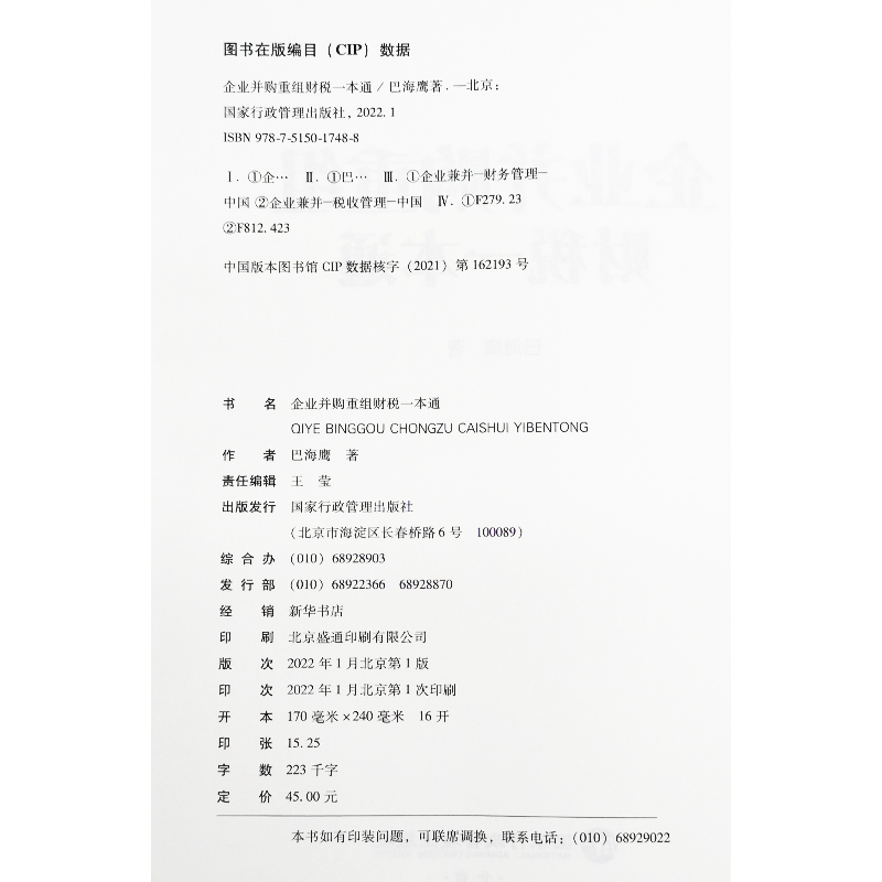 正版 国家行政学院 图书籍9787515017488 巴海鹰 企业并购重组财税一本通