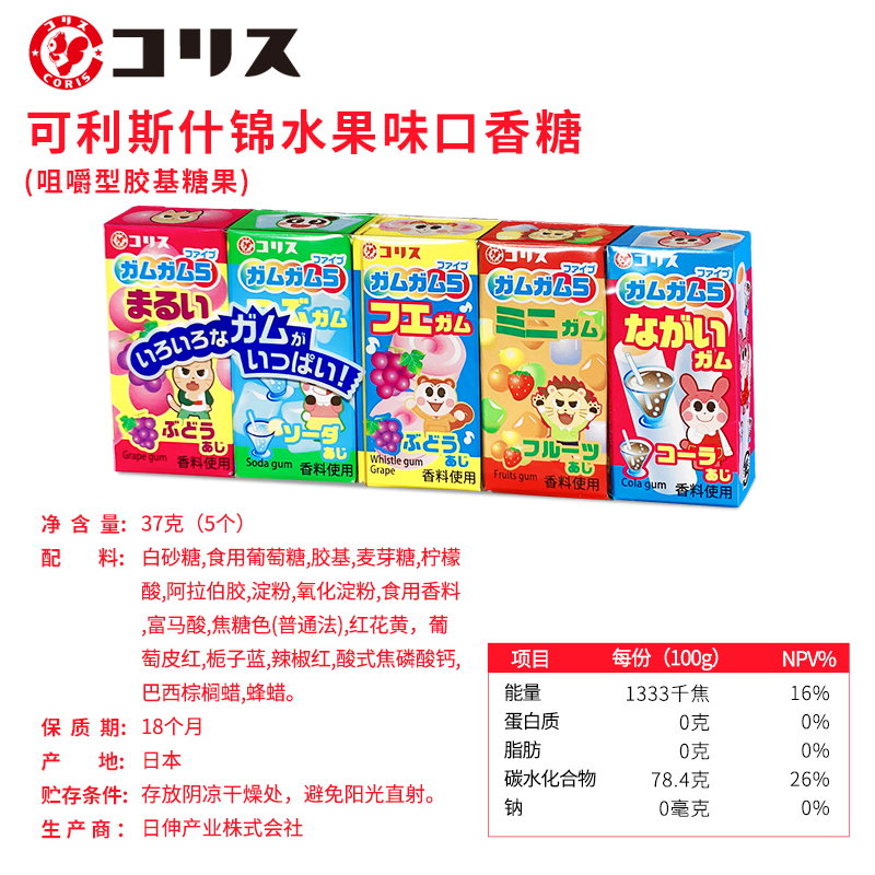 可利斯口香糖什锦水果味37g原装 进口趣味造型泡泡糖儿童网红糖果
