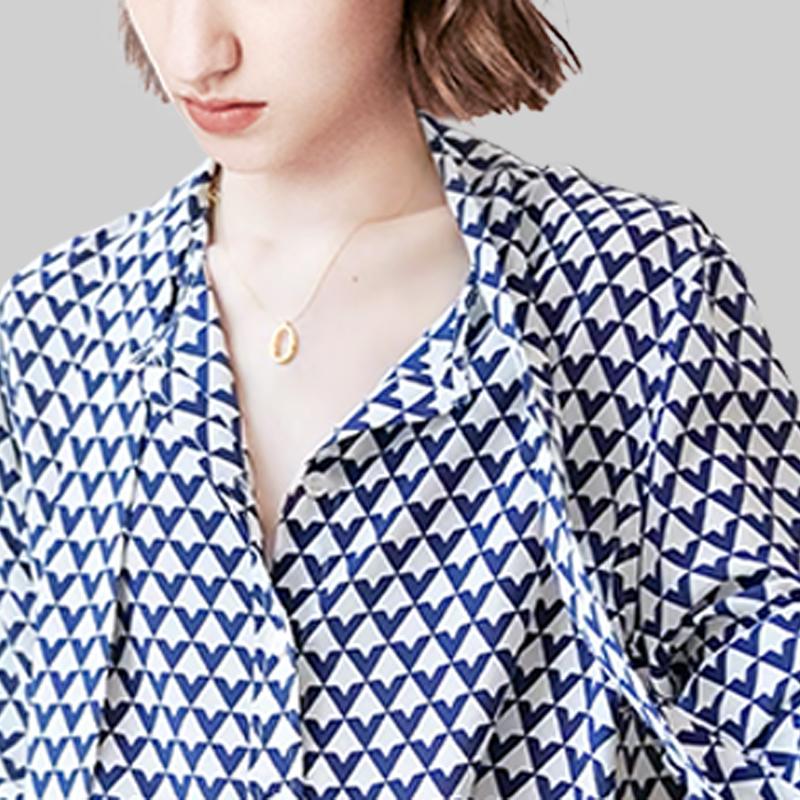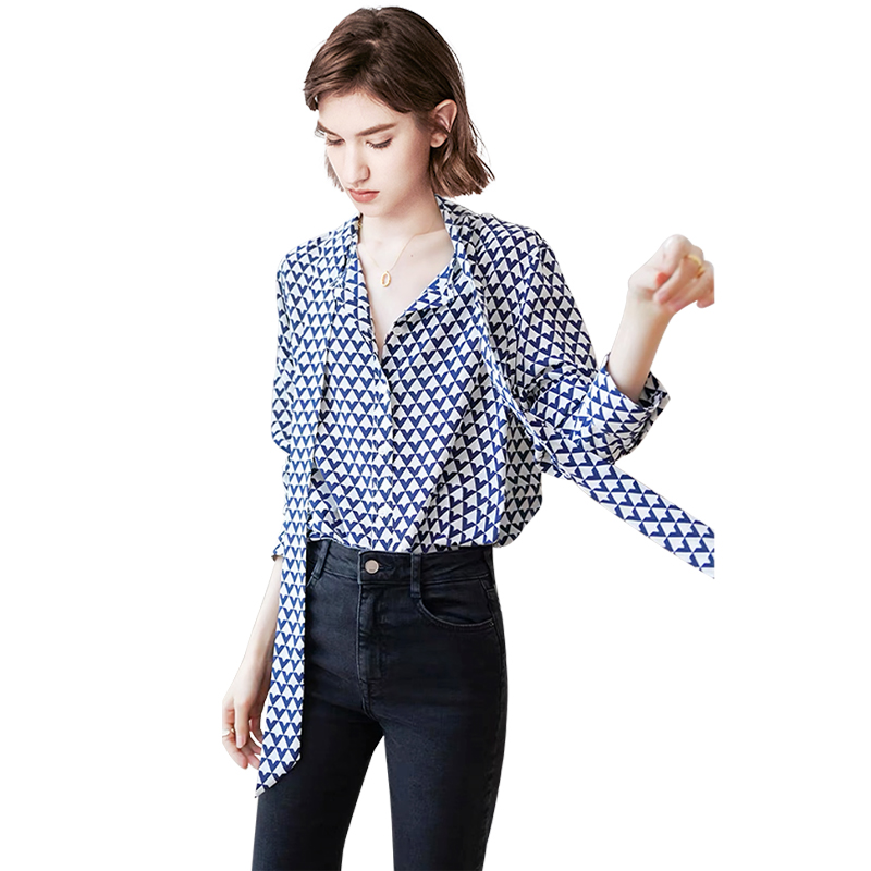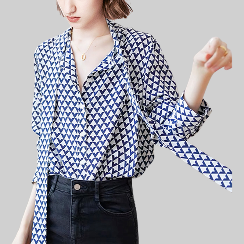 优雅V领印花衬衫 女法式 宽松显瘦休闲衬衣 新款 简约轻熟风2025秋装