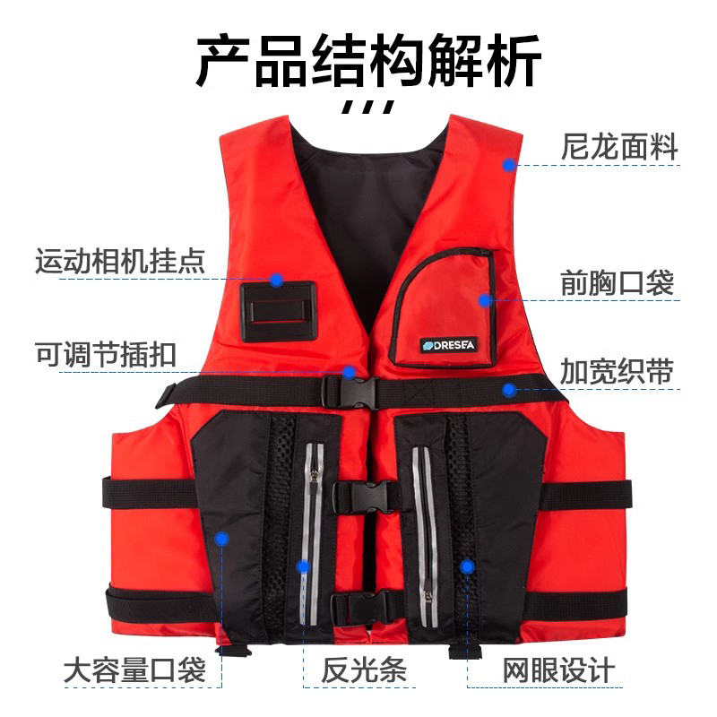 救生衣成人户外运动专业钓鱼大浮力车载船用多功能背心马甲求生衣