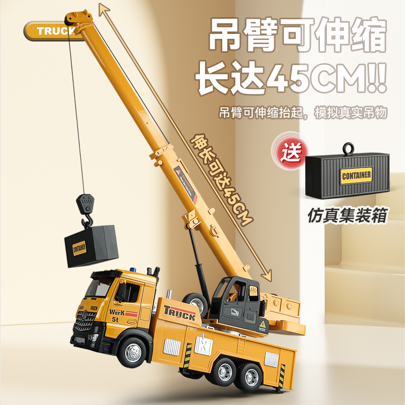 卡威男孩大吊车玩具车儿童仿真合金工程车小汽车玩具吊机起重机