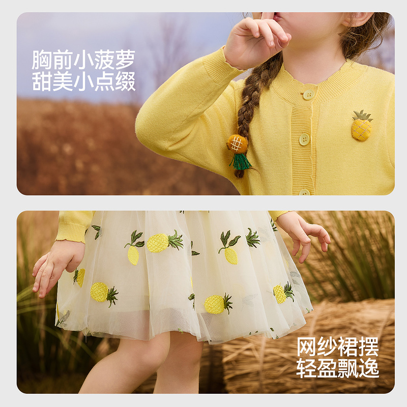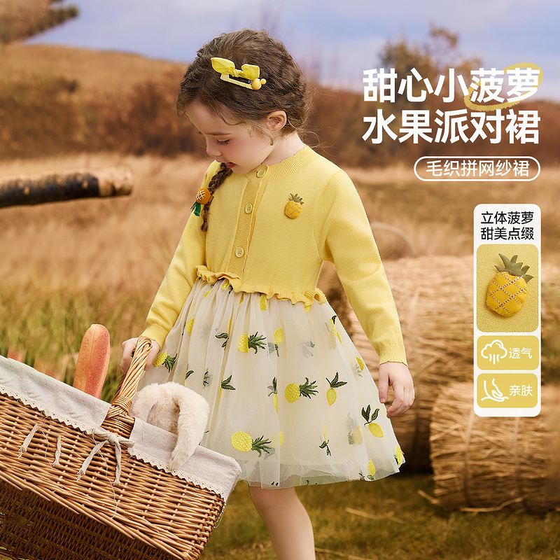 妖精 高级感学院风 口袋草莓印花灰色网纱连衣裙女2025年早秋新款