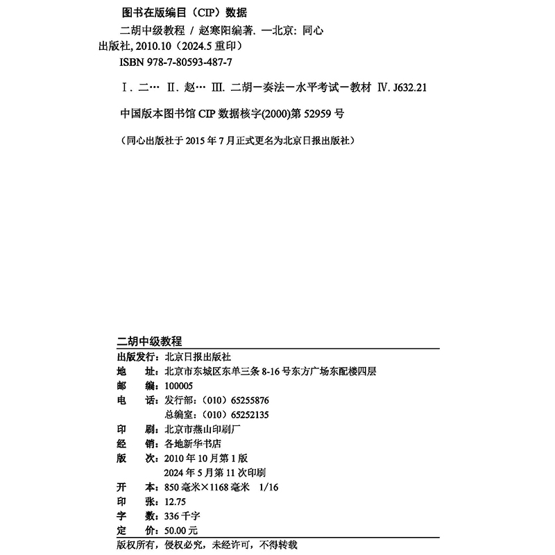 正版 独奏曲谱曲集 社 入门学习用书教材 同心出版 畅销书籍 民乐弦乐高级教材 包邮 二胡中级教程 赵寒阳 演奏自学教程