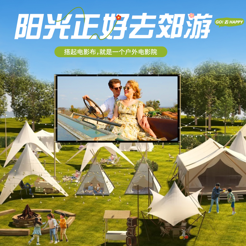 户外便携电影幕布可折叠投影仪幕布100寸150寸加厚弹力幕移动室外露天露营老式 电影幕布高清屏幕影子舞背景布
