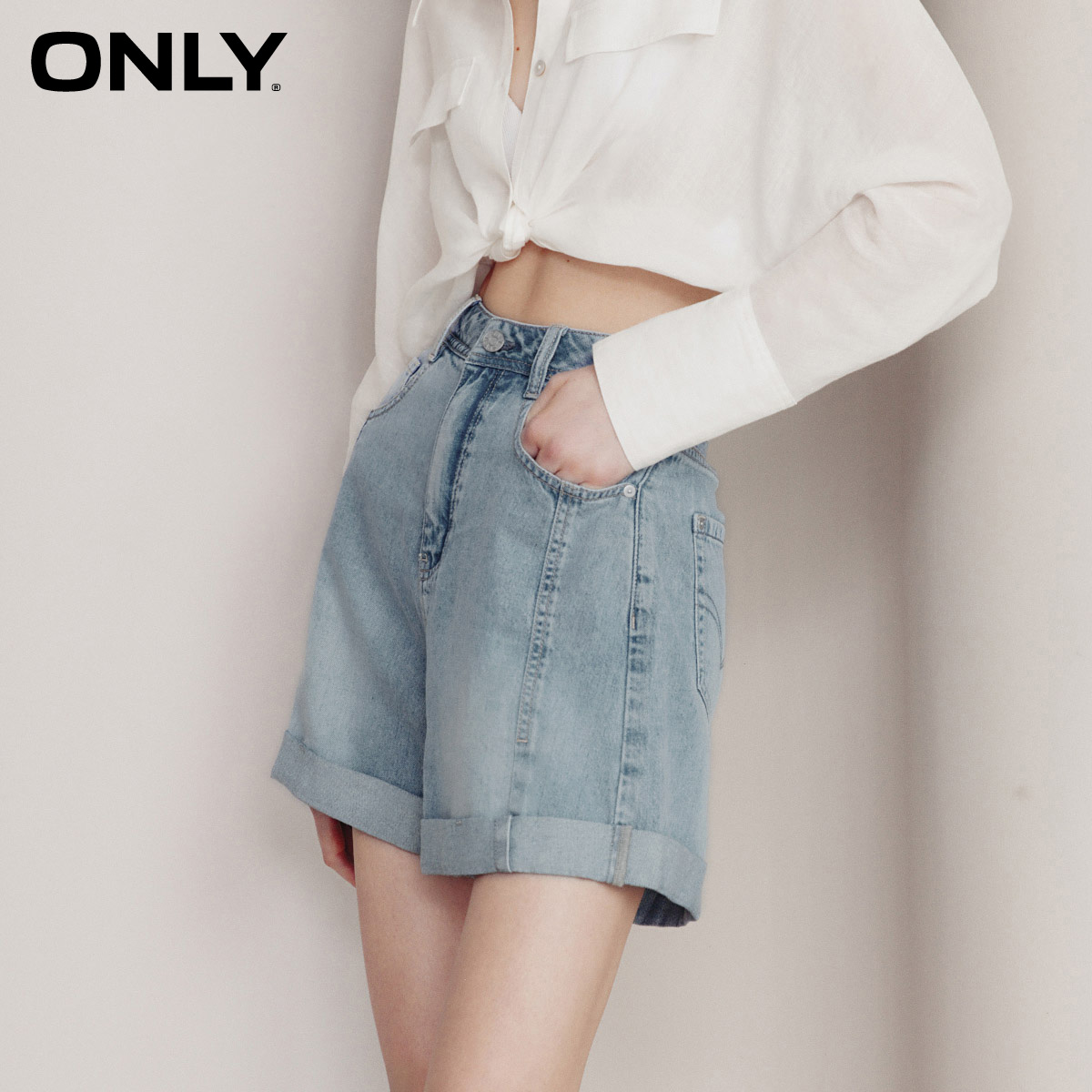 高腰弹力显瘦a字辣妹直筒阔腿裤 女夏薄款 复古小个子牛仔短裤 美式