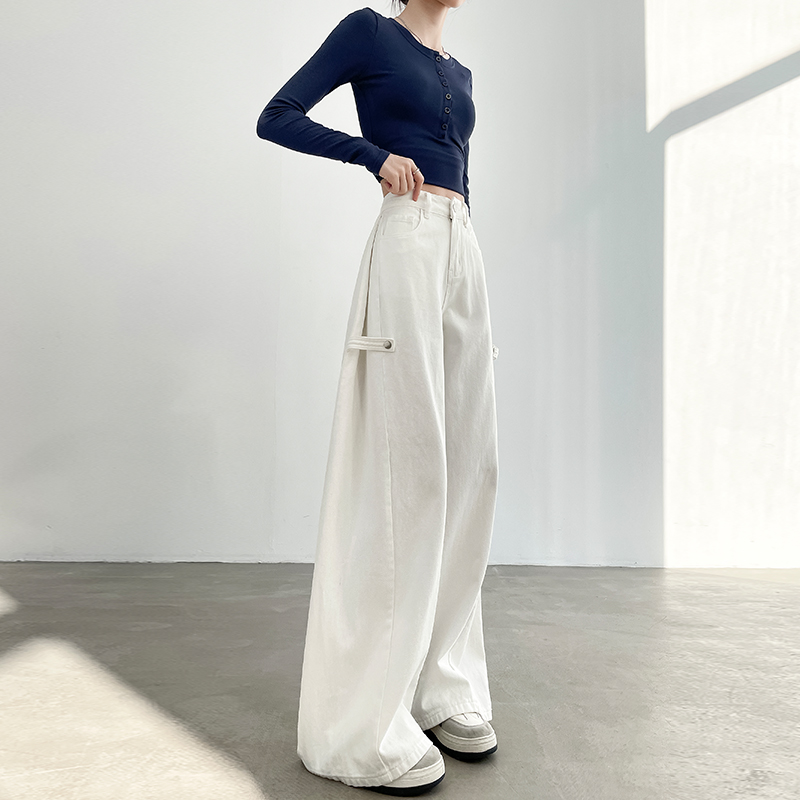通勤宽松显瘦高腰休闲长裤 新款 女2025秋季 紫涵浅蓝牛仔阔腿弯刀裤