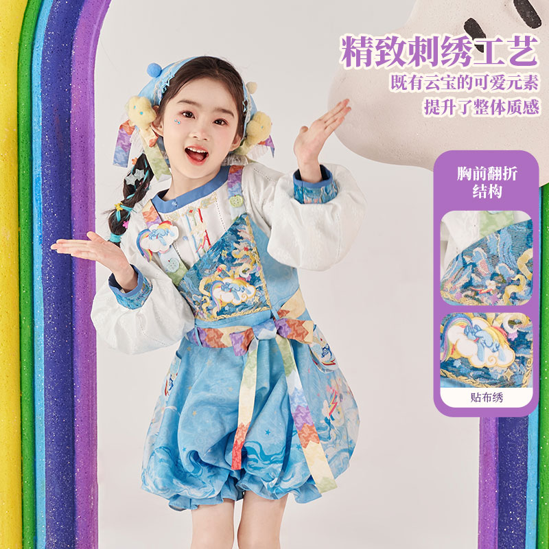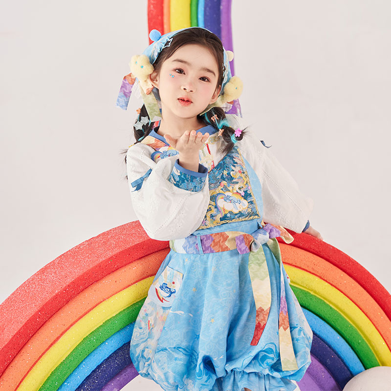 新中式 彩虹闪电 汉服套装 背带裤 十三余童装 灯笼裤 小马宝莉云宝