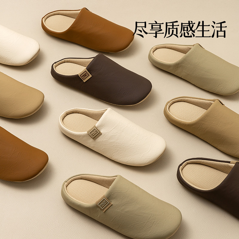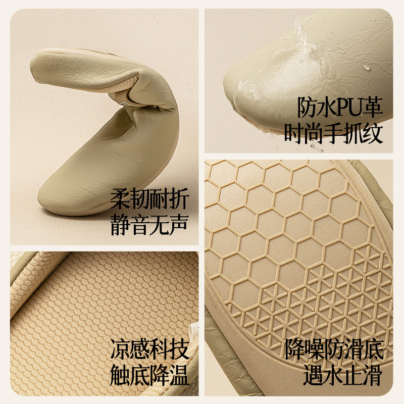女防水室内家居家用地板防滑软底皮拖男 夏季 日式 静音抗菌凉感拖鞋