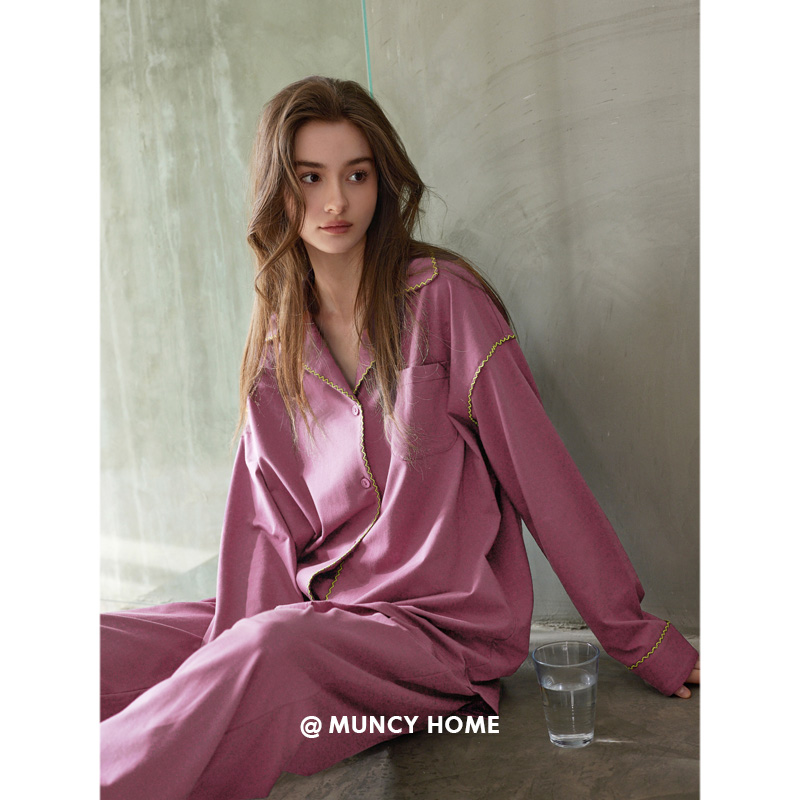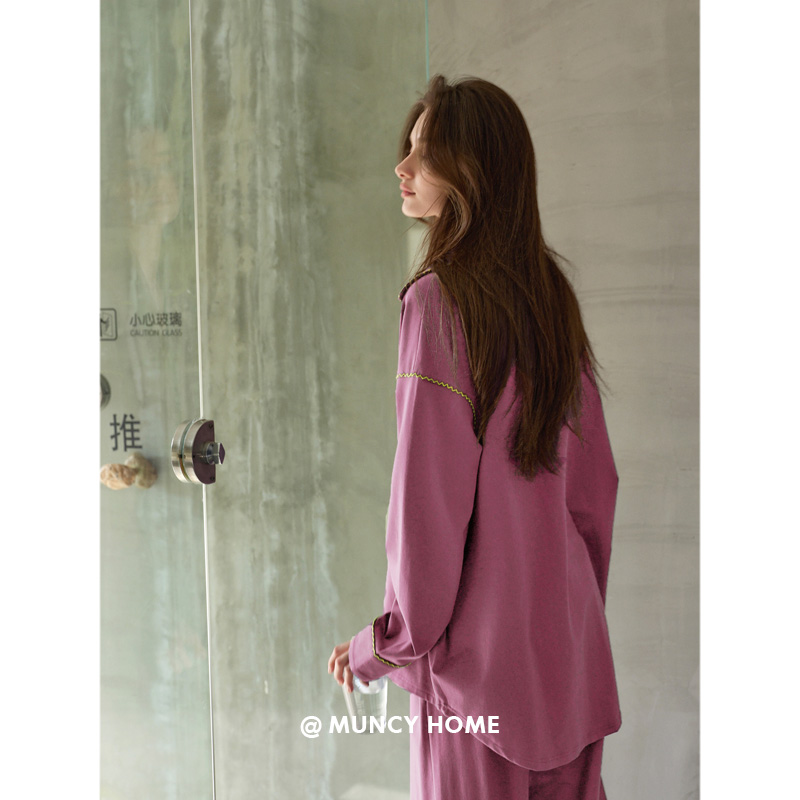 柔软棉睡衣精致简约撞色高级感家居服女长袖 春秋季 丹紫红 曼系