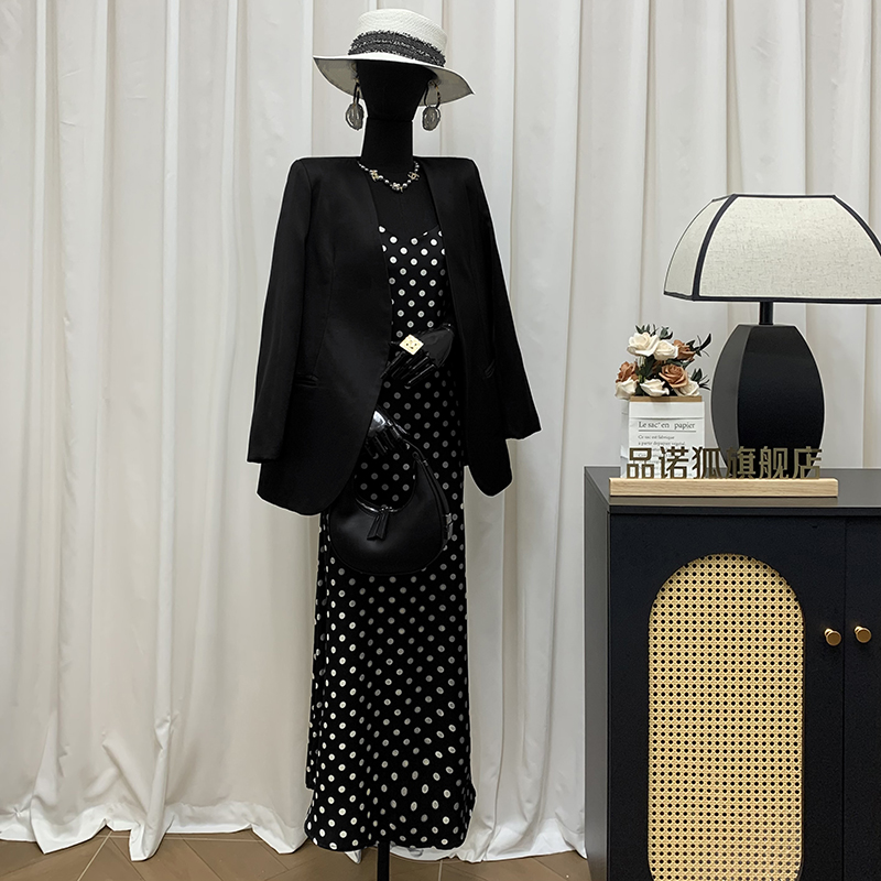 外套宽松显瘦波点吊带连衣裙 醋酸缎黑色小西装 品诺狐2025春季 新品