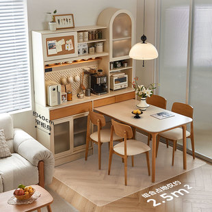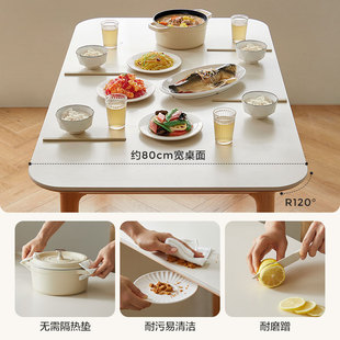 轻奢意式 极简小户型长方形家用复古风岩板餐桌椅组合实木吃饭桌子
