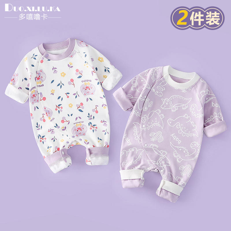 衣服 外出服爬服A类纯棉哈衣春秋新款 两件装 婴幼儿连体衣长袖