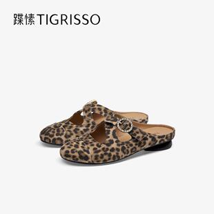 TA65127 豹纹圆头交叉扣带玛丽珍可外穿拖鞋 新款 蹀愫2025年春季