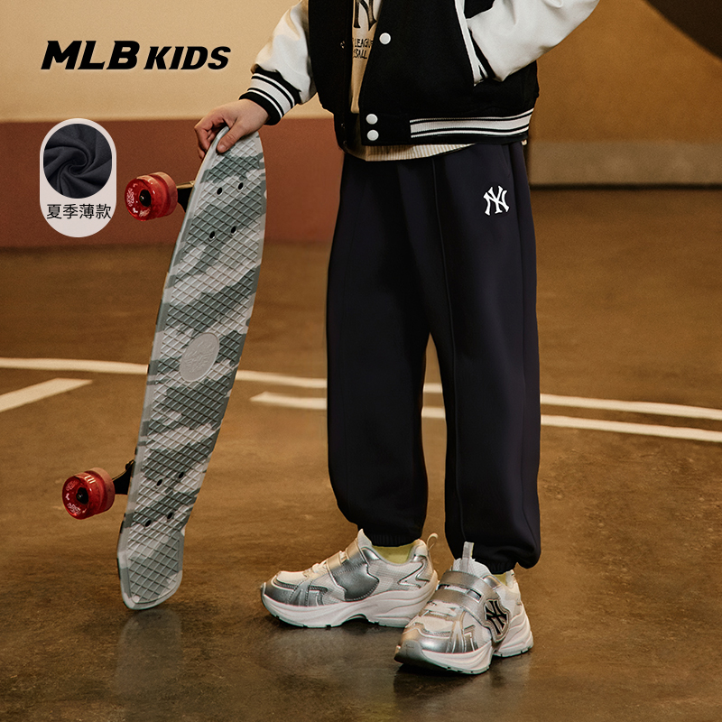 MLB儿童官方男女童精致有型刺绣LOGO舒适纯色休闲长裤 25春夏新款