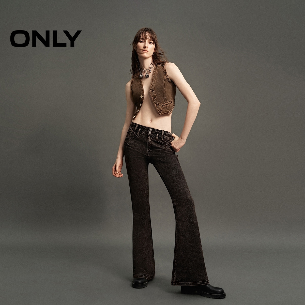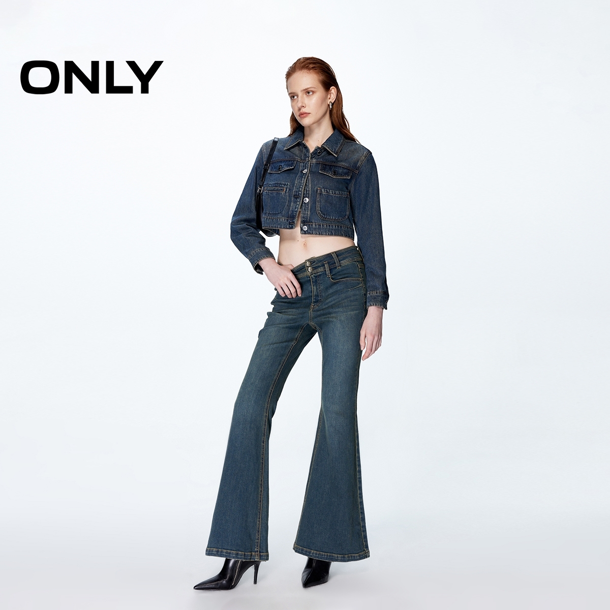 高腰复古街头慵懒风层次拼接破洞宽松直筒牛仔裤 ONLY2025秋季 新款