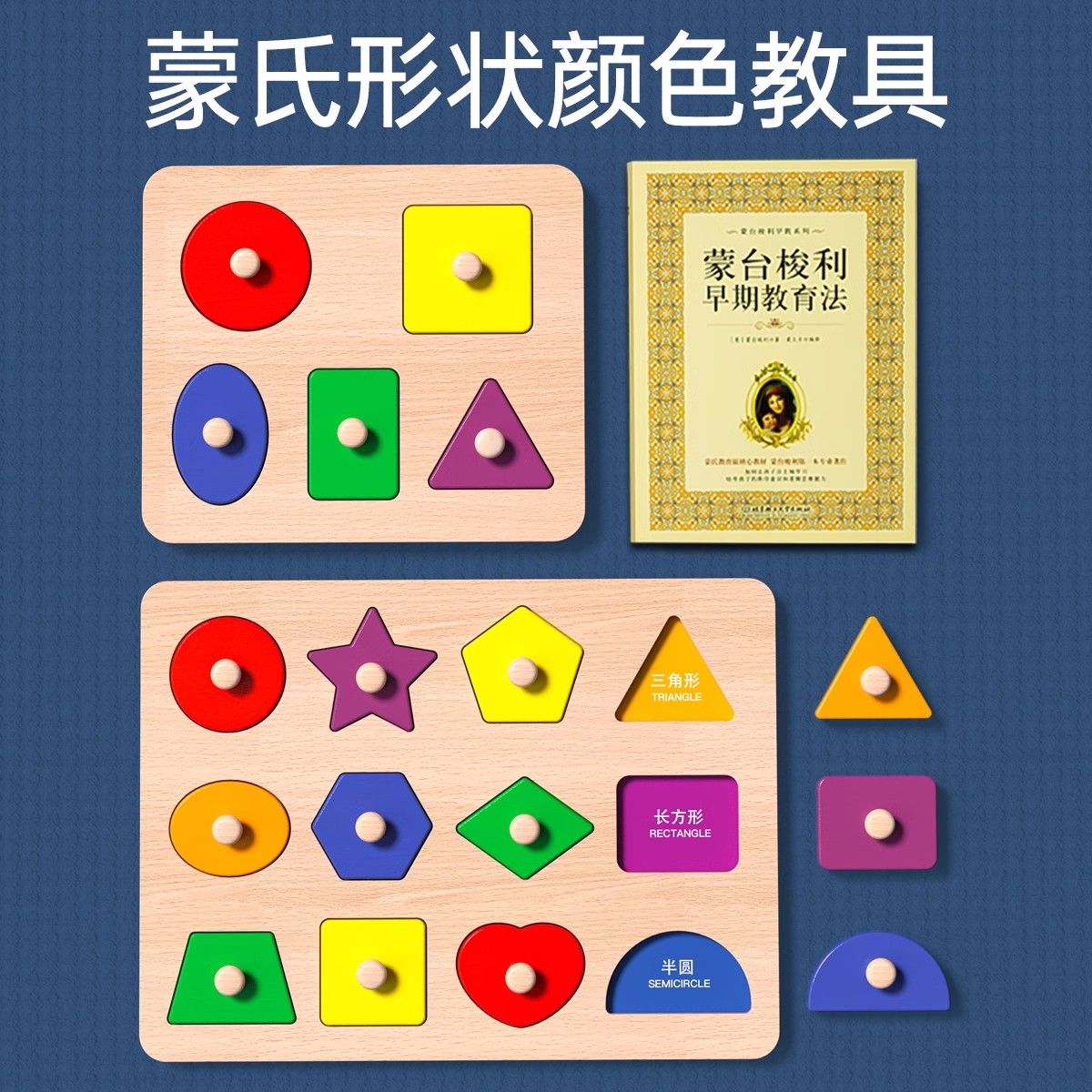 婴幼儿童颜色认知教具宝宝蒙氏早教益智玩具认识几何形状分类配对