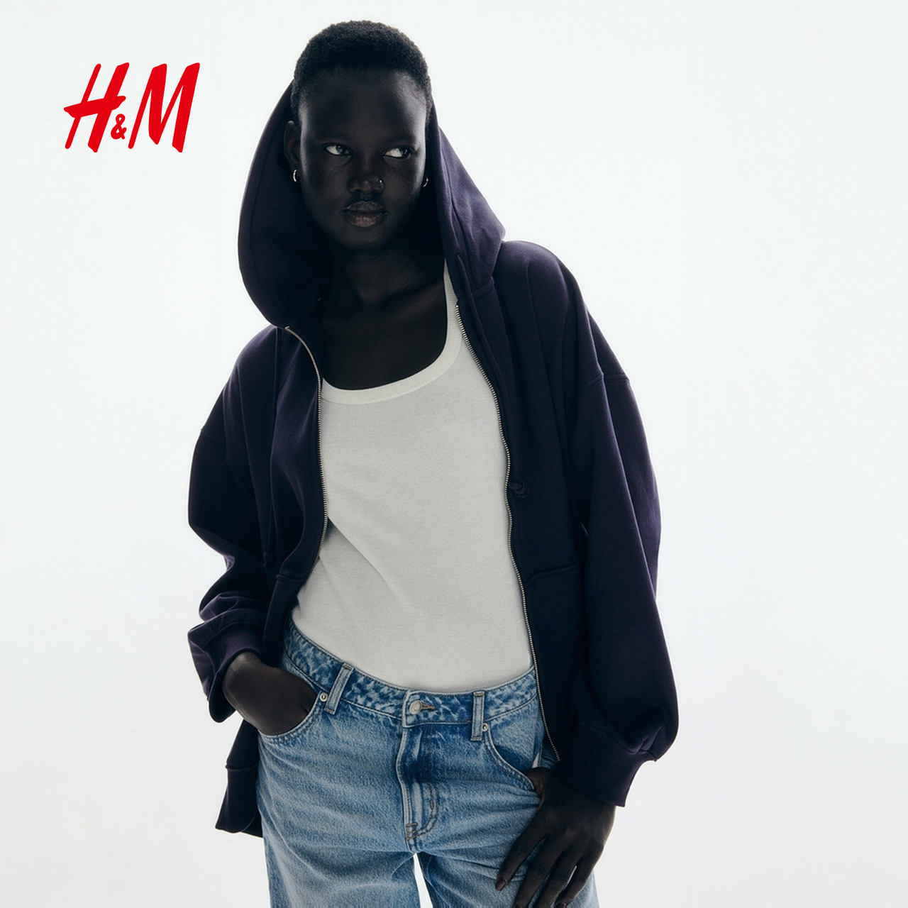拉链连帽衫 大廓形内里绒衫 1234775 卫衣秋季 HM女装
