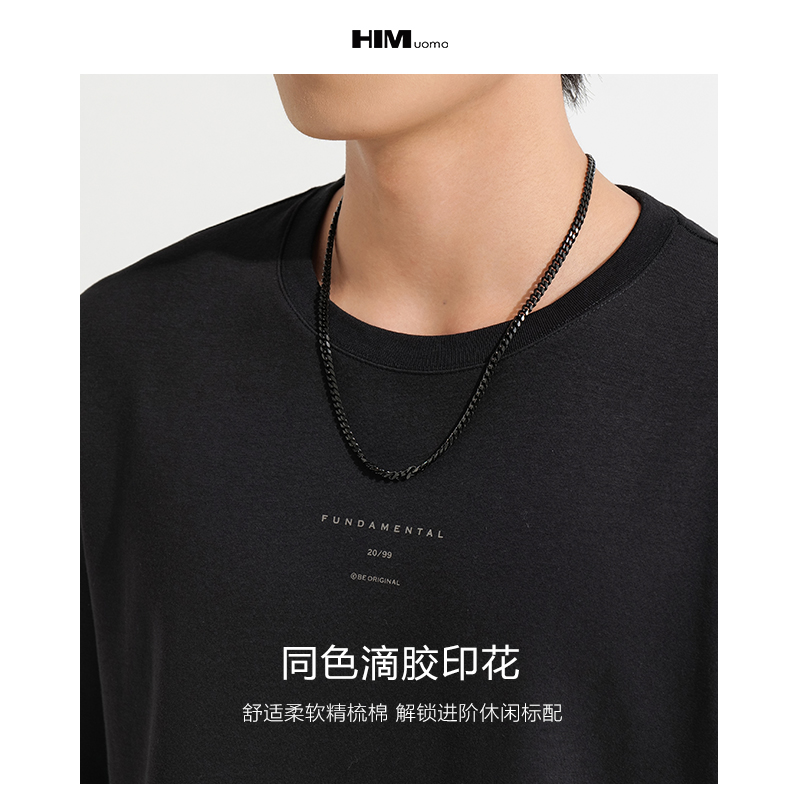 修身 2025秋季 圆领长袖 简约白色滴胶印花休闲打底衫 T恤衫 HIM汉崇