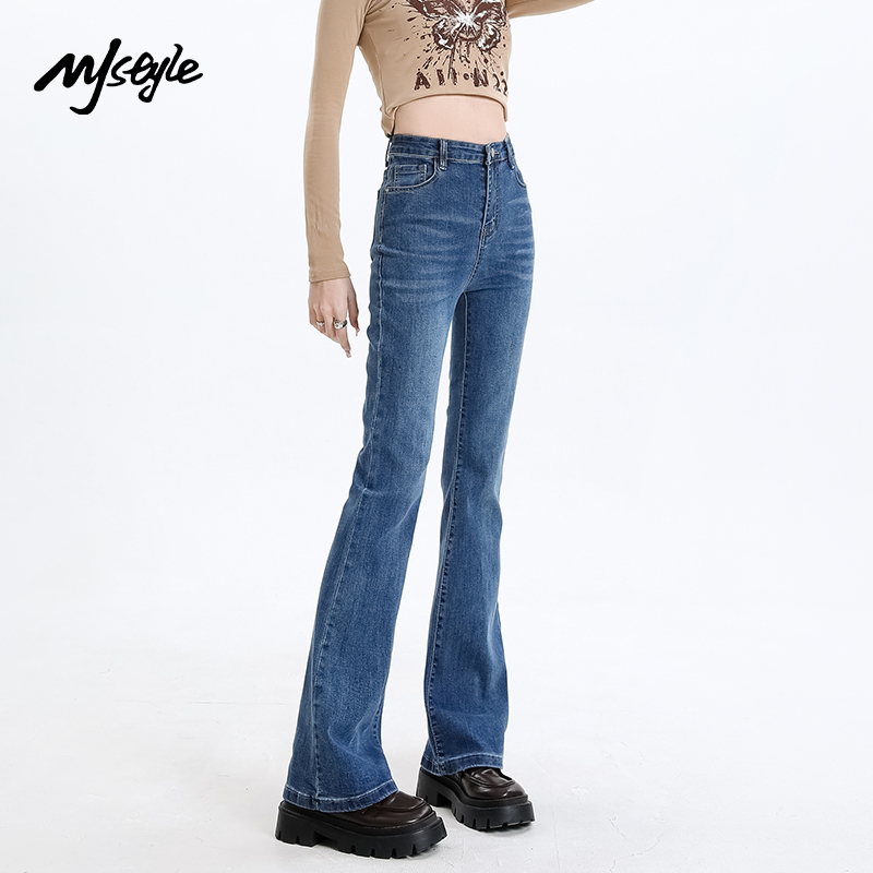 STYLE高腰微喇牛仔裤 复古喇叭裤 女2025春秋新款 美式 子 弹力长裤