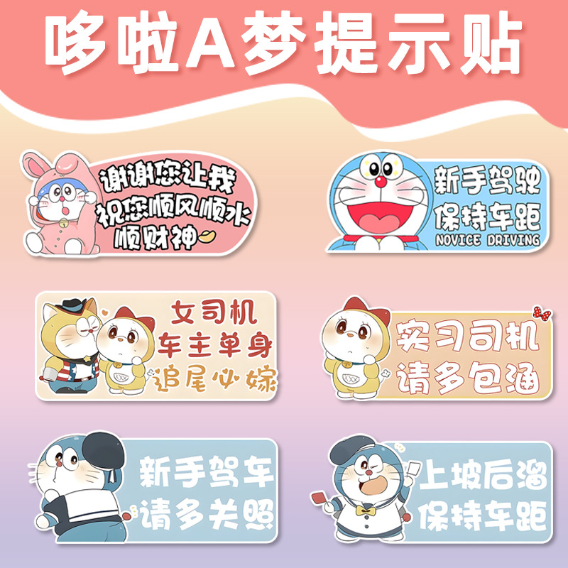 实习车贴标志新手上路女司机贴纸哆啦A梦磁吸装 饰汽车反光警示贴